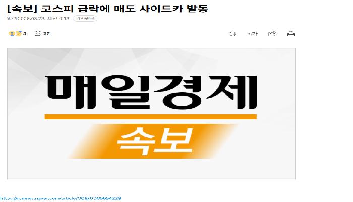 [속보] 코스피 떡락하고 매도 사이드카 발동됨