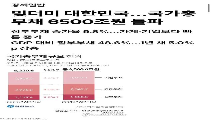 국가총부채 6500조 돌파... 진짜 빚더미네