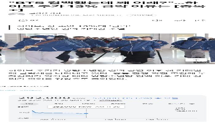 BTS 컴백 후 하이브 주가 13% 급락
