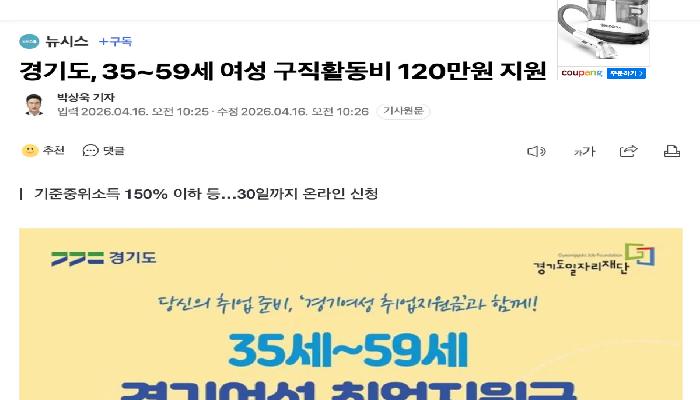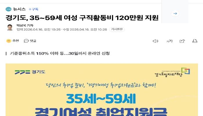 [속보] 35~59세 여성 대상 구직활동비 120...