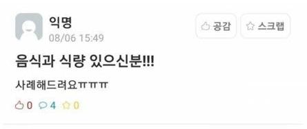 에타에서 구하는 음식과 식량 있는 사람!!