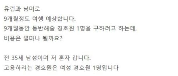 여행 경호원을 찾는 아재.