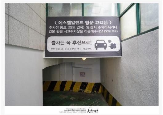 후진으로 나와야한다는 주차장.
