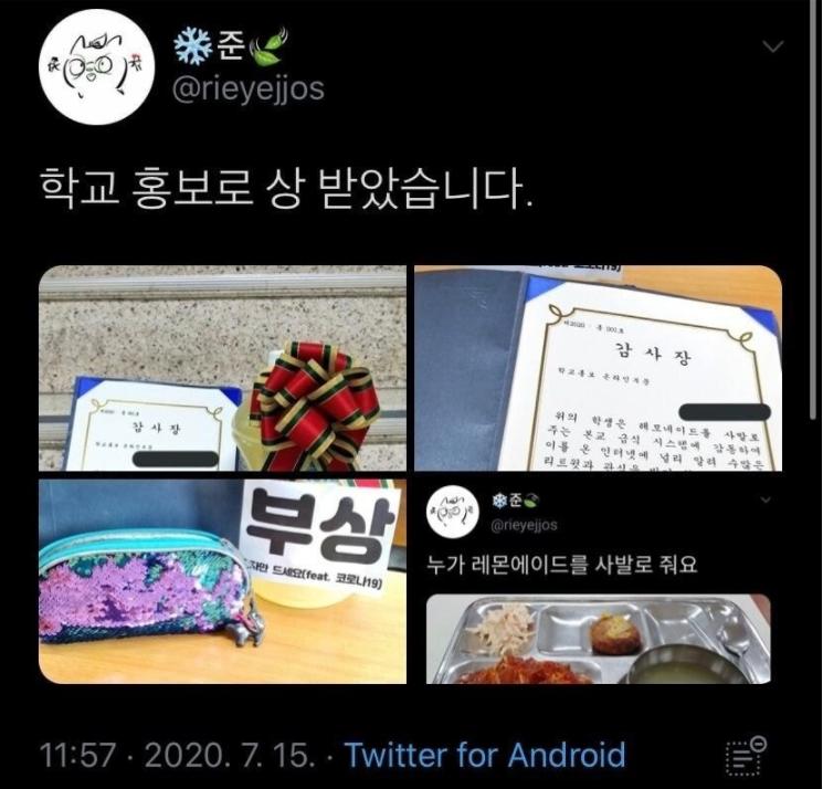 레몬에이드와 학교 홍보상.