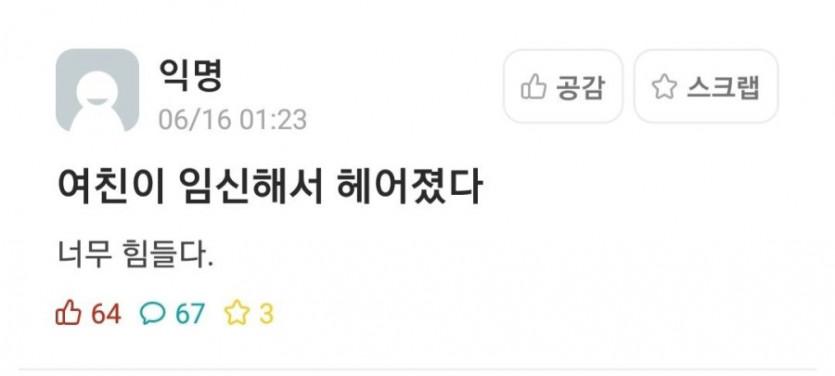 임신한 여친과 헤어짐.