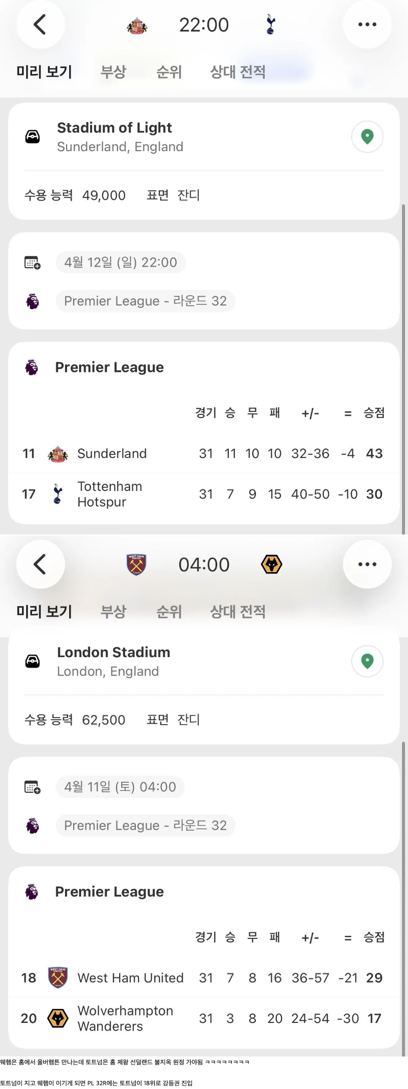 토트넘 다음 일정 보니까 진심 강등권 각 날카롭네 ㄷㄷ