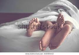 침대 위 발바닥 4개.